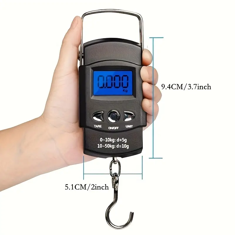 1.صغير الحجم بمقدار قبضة اليد يتضمن خطاف من الفولاذ المقاوم للصدأ لتعليق المراد قياسه.