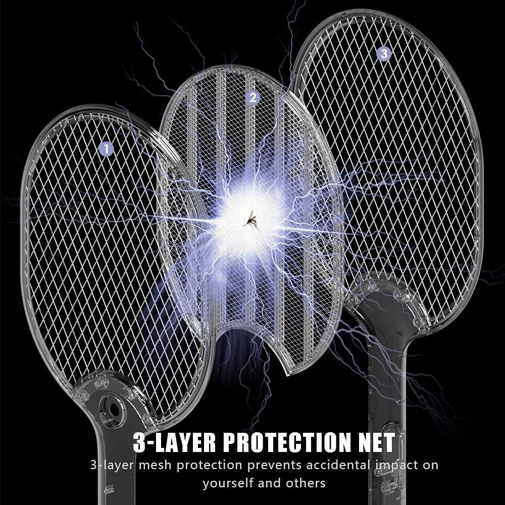 1.مضرب البعوض الكهربائي مع ضوء LED بطارية قابلة لإعادة الشحن، بطارية 500 مللي أمبير مدمجة في المضرب، يمكن شحنها عن طريق التوصيل بأي من أجهزة منفذ